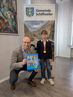 Da Felix bei der Ehrung herausragender Sportler beim Neujahrsempfang nicht persönlich anwesend sein konnte, lud Bürgermeister Cedricc Jochum ihn nun ins Rathaus ein, um ihm persönlich zu gratulieren. In einem feierlichen Rahmen würdigte der Bürgermeister seinen außergewöhnlichen Erfolg und betonte die Bedeutung solcher sportlichen Spitzenleistungen für unsere Gemeinde.