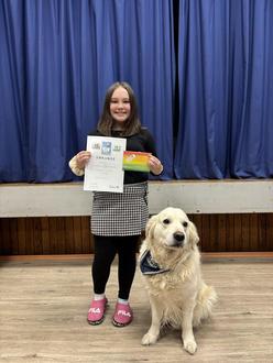 Auch unser Schulhund Henry gratuliert Amélie zum ersten Platz.
