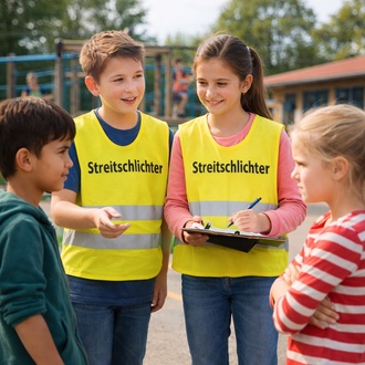 Unsere Schülerinnen und Schüler wünschten sich bessere Lösungen für Streitigkeiten auf dem Schulhof. Der Schülerrat hat dieses Anliegen aufgegriffen und plant die Ausbildung von Streitschlichterinnen und Streitschlichtern. Ausgewählte Kinder lernen dabei, bei Konflikten zwischen Mitschülerinnen und Mitschülern als neutrale Vermittler zu helfen.