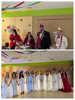 Ein absoluter Höhepunkt für die kleinen Narren war der Besuch des Heiligenwalder Prinzenpaares. Prinz Florian I. und Prinzessin Bettina l. ließen es sich nicht nehmen, mitsamt Gefolge im Wiesengrund vorbeizuschauen. Im Gepäck hatten sie nicht nur gute Laune, sondern auch kleine Überraschungen, die bei den Kindern für große Begeisterung sorgten.