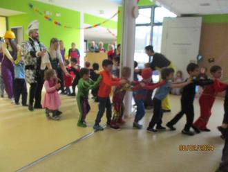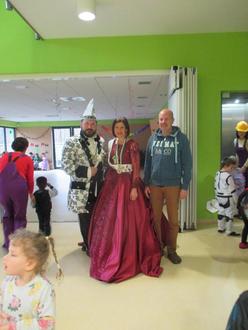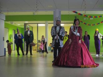 Um halb zwölf konnten wir das Prinzenpaar Prinz Roland II und Prinzessin Claudia I zum gemeinsamen Tanz begrüßen. Unterstützt wurden sie durch den HCV und den KKV. Beide Vereine haben den Kindern Leckereien mitgebracht und unser Ortsvorsteher Herr Maroldt spendet Berliner für alle. Auch am Freitag war die Stimmung in den Gruppen groß und die Kinder zogen in den verschiedensten Kostümen bei einer Polonäse durch das Haus.