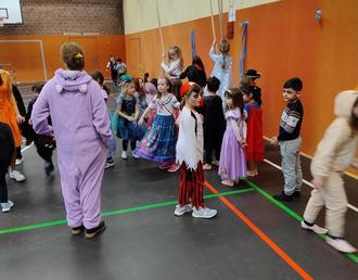 Traditionell fand am letzten Tag vor den Faschingsferien eine große Feier in der Turnhalle statt. Die Kinder erschienen alle verkleidet und konnten sich in der Halle ausgiebig austoben.