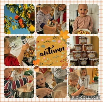 Der Herbst begleitet uns mit bunten Blättern, kühleren Tagen und einer Fülle von Lernmöglichkeiten. In unserer Einrichtung haben wir die Obsternte genutzt, um Praxisnähe zu schaffen. Wir leben und lieben hier sehr die Ländlichkeit und unsere Länderein. Bei Spaziergängen finden wir immer eine Vielzahl von Schätzen. So auch wie nun,- im Herbst. Naschen in der Natur oder die Zubereitung von Speisen, dies lieben wir. Die Kinder lernen welch ein Gewinn es sein kann diese Sachen zu kennen und den Nutzen aus verschiedenen Dingen zu ziehen.