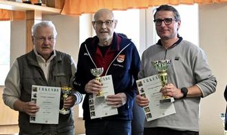 Siegerehrung Disziplin Revolver.44 Magnum, Herren III, von rechts 1. Mario Pforr, 2. Karl-Heinz Kämmerer (beide SSV Niedertopfstedt), 3. Hans Gülland (SG Worbis)