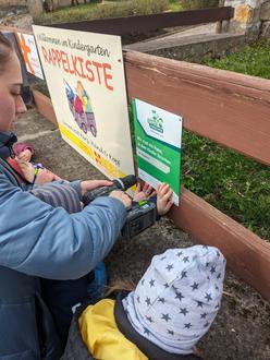 Der große Höhepunkt der Woche war am Freitag die Zertifizierung unserer Einrichtung durch die STIFTUNG "KINDER FORSCHEN" mit der Anbringung unseres Schildes. Nun weiß jeder der an unserem Kindergarten vorbeiläuft, dass hier geforscht wird.
