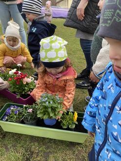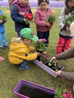 Zum Abschluss des Winters und zur Begrüßung des Frühlings fand am 1. April ein kleines Frühlingsfest statt. Jedes Kind brachte eine Blume mit und gemeinsam bepflanzten wir unsere Pflanzkübel und hingen sie an unseren tristen Zaun. Schon begrüßte uns der Frühling und die Sonne kam auch mal raus. Dafür noch einmal lieben Dank an alle Eltern und Kinder, für die wundervollen Blumen. Wir haben für die Idee viel Lob erhalten und erfreuen uns sehr über die schönen Blumen am Zaun.