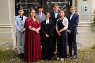 Am Pfingstsonntag war es soweit, die Konfirmanden Thilo Manhardt, Max Vonnoe, Hannes Altenburg aus Niederbösa, Zoe Lucas aus Abtsbessingen, Lea Petri aus Bliederstedt und Ferdinand Alberts aus Wasserthaleben wurden von Pastorin Theresa Hauser konfirmiert.