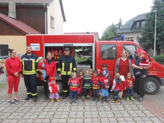 Besondere Freude bereitete den kleinen Feuerwehrkrümeln die Fahrt mit dem Feuerwehrauto durch beide Ortsteile, bei dem auch mal die Sirene eingeschaltet wurde.