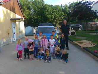 Als großer Höhepunkt besuchte uns Polizeihauptmeister Alexander Brückner mit seinem Polizeiauto. Kindgerecht erzählte er viel Wissenswertes über seine Arbeit, zeigte uns seine Ausrüstung mit der sich alle Beamten schützen können/müssen und was sich alles im Polizeiauto befindet. Alle Kinder durften einmal ins Auto krabbeln und sich wie ein Polizist fühlen.