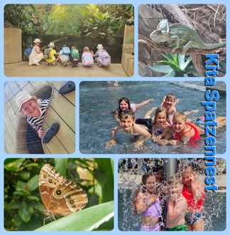 Nachdem die Kinder wieder etwas Neues gelernt hatten, durften sie natürlich auf dem großen Spiel- und Kletterplatz verschwinden und sich ausgiebig austoben. Bei einer Portion Pommes zum Mittagessen wurde an einem schattigen Plätzchen erst einmal eine kleine Pause eingelegt, bevor es weiterging zur Wasserwelt. Natürlich hatten die Kids ihre Badesachen im Gepäck.
