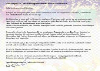 Neujahrsgruß des Ortschaftsbürgermeister der Ortschaft Großenehrich