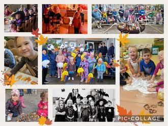In der sich anschließenden "Herbstwoche" im Kindergarten haben die Kinder zum Thema gespielt, gesungen, gebastelt, geschnitzt und gebacken. Dabei wurden auch die Früchte, aus dem von den Kindern bewirtschafteten Garten, verwendet. Ein besonderes Highlight für die Kinder war ein Riesenmandala, dass sie selbst aus Kastanien, Nüssen, Blättern und Zweigen im Garten der Kita gestaltet haben.