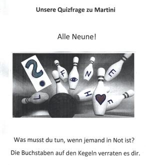 Dort werden das Martinsanspiel aufgeführt, das Quiz aufgelöst, die Gans verlost und die Martinshörnchen geteilt.