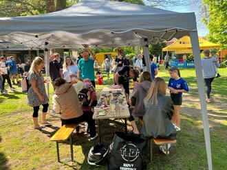 Auf die Kinder warteten zahlreiche Angebote zum Spielen, Herumtollen und einfach Spaß haben. Hüpfburgen waren aufgebaut, beim Kistenstapeln im Kletterturm konnten die Kinder ihr Geschick testen und Spielgeräte und Kinderschminken rundeten das Angebot ab. Vom „Angelverein Topfstedt e.V.“ war Daniel Nadler den ganzen Tag mit seinem Angelstand und Familie vor Ort.