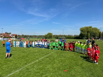 Zwischen den Turnieren gab es Raum für Ehrungen. Alexander Klement, Vorsitzender des Jugendausschuss beim Kreisfußballausschuss Nordthüringen (NTKFA), überreichte dem Vereinsvorstand einen Wertscheck über 300,00 €. Der Verein hatte Ende letzten Jahres die Auszeichnung „Aktivster Verein mit Nachwuchsbetrieb 2023/2024“ erhalten und nun wurde der feierliche Rahmen des Kinderfestes nachträglich genutzt, um ein paar lobende Worte über die breite Nachwuchsarbeit an die Anwesenden zu richten. Der Verein bedankt sich dafür auch noch einmal an dieser Stelle beim NTKFA und bei Alexander Klement.