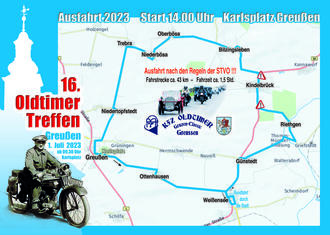Die beliebte Oldtimer-Ausfahrt beginnt 14.00 Uhr bis ca. 15.00 Uhr in die Umgebung von Greußen (siehe Streckenplan).