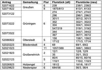 Durch das Landesamt für Bodenmanagement und Geoinformation, Katasterbereich Artern, wurde das Liegenschaftskataster fortgeführt.