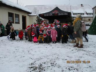 Auf der kleinen Bühne am Markthäuschen warteten bereits die Kinder vom Kindergarten „Pusteblume“ aufgeregt auf ihren Auftritt. Dafür reiste die Technik mit den Gemeindearbeitern vom Radweg am ehemaligen Bahnübergang wieder zurück auf den Marktplatz, damit auch die Kinder von ihren Eltern und Großeltern zu verstehen waren. Wie bereits in den vergangenen Jahren erhalten die Kinder für ihren Auftritt eine Aufmerksamkeit vom Weihnachtsmann. Für ein Lied oder Gedicht gab es vom Weihnachtsmann kleine liebevoll verpackte Süßigkeiten, die ebenfalls von den Gemeindearbeitern noch eilig zum Weihnachtsmann gebracht wurden. Die Süßigkeiten wurden von Frau Greinke organisiert und liebevoll zusammengestellt und die Weihnachtspost vorbereitet hat.