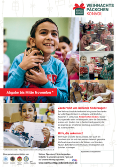 Wenn ihr Zeit und Lust habt mit euren Kindern ein Weihnachtspäckchen zu packen, würden wir uns sehr über eure Unterstützung freuen. Die fertigen Päckchen + 2 Euro (für Transportkosten) könnt ihr dann bei einer Abgabestelle in eurer Nähe (www.sammelstellen.weihnachtspaeckchenkonvoi.de) abgeben. Ihr könnt auch in eurer Schule oder Kita fragen, ob die bereits dabei sind. Letzter Abgabetag ist Mitte November.