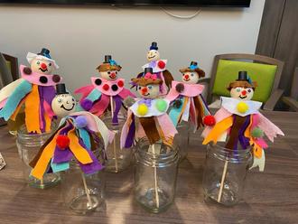 Für die Tische wurden liebevoll kleine Clowns gebastelt, welche die