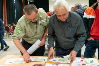 Stefan Sander und Gerhard Propf bereiten die Touren für den Wandertag vor.