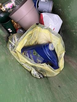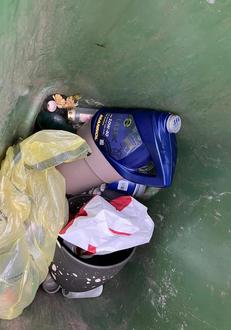 Kürzlich wurden im Kunststoffsammelbehälter am Friedhof Hauröden Gebinde für Betriebsstoffe unsachgemäß entsorgt.