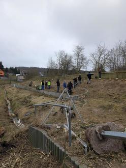 Die fleißigen Helfer nahmen sich verschiedener Bereiche an, die dringend einer Verschönerung bedurften. So wurden die Flächen vor den Sühnekreuzen von überwucherndem Grün befreit und gesäubert, das Brückengeländer an der Eller von Rost befreit und für einen neuen Anstrich vorbereitet und der Ellergraben am Park von Unrat und Gestrüpp befreit.