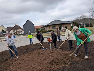 Das Herzstück der Aktion bildete jedoch die Umgestaltung und Neuanpflanzung des Kreisverkehrs. Es war ein richtiger Kraftakt, der sich gelohnt hat. Hier zeigten die Freiwilligen, dass Integration und Zusammenhalt keine leeren Worte sind, sondern gelebte Realität. Die tatkräftige Unterstützung von ausländischen Mitbewohnern war, trotz einiger Sprachbarrieren ein beeindruckendes Zeichen des gemeinsamen Engagements für das Dorf. Der Kreisverkehr kann sich sehen lassen, die Ideen und Umsetzung durch die Blumenwerkstatt Rybicki sind beispielhaft für gelebtes Engagement.