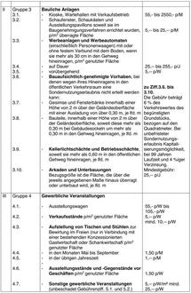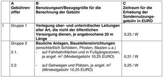 „Anlage zur Satzung über Sondernutzungsgebühren