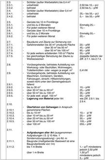 Gebührentarif zu §§ 1 und 3 der Sondernutzungsgebührensatzung