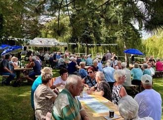 Ariane Balthasar und Katja Nolle nahmen die Organisation in die Hand und wie immer klappte alles wie am Schnürchen. Im Schatten der Bäume und mit dem Blick über das Wasser hatten die Vereinsmitglieder den Gästen ein schönes Plätzchen vorbereitet. Es wurden Tische dekoriert, Wimpelketten aufgehangen, Pavillions und Sonnenschirme aufgestellt. Das war auch gut so, denn das Wetter war wie immer fantastisch und glücklicherweise nicht ganz so heiß wie in den Tagen zuvor. Die ersten Gäste ließen nicht lange auf sich warten und sicherten sich rechtzeitig die besten Plätze. Punkt 14 Uhr war es dann soweit. Der Vereinsvorsitzende Maik Balthasar eröffnete die Veranstaltung und die Ottenhäuser Blasmusikanten ließen ihre Instrumente erklingen. Bei Kaffee und Kuchen, untermalt von den Hits der Blasmusik, ließen es sich die vielen Gäste gut gehen. Einige unserer Senioren hatten sich schon länger nicht gesehen und genossen daher das Wiedersehen beim „Böhmischen Traum“ auf unserem wunderschönen Badgelände. Die Ottenhäuser Blasmusikanten sorgten mit ihrer Musik nicht nur für gute Stimmung bei den Senioren und Veranstaltern, sondern auch bei den zahlreichen Badegästen. Sie nutzten die Gelegenheit, einen etwas außergewöhnlichen Badetag im Naturschwimmbad Heldrungen zu erleben. Der Nachmittag verging wie im Flug und war viel zu schnell vorüber. Die extra angereisten Fans der ersten Reihe und die zahlreichen Gäste waren sich einig, dass dies nicht die letzte Veranstaltung dieser Art bleiben sollte.