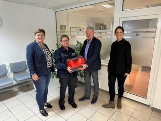 v.l.n.r. Bürgermeisterin Frau Schäffer, Stadtbrandmeister Silvio. Witt, Sparkassenversicherung, Herr Peters, SV Kommunal, Frau Bergsieker