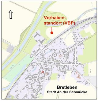Generelles Ziel des VBP „Errichtung einer Photovoltaik-Freiflächenanlage auf der Mühlwiese Bretleben“ der Stadt An der Schmücke ist die Schaffung von Bauplanungsrecht auf ca. 2,91 ha (landwirtschaftliche Nutzfläche) für die Nutzung solarer Strahlungsenergie als regenerative Energiequelle nördlich von Bretleben.