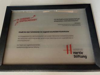 Im Jahr 2023 bewarb sich die Stadt An der Schmücke erfolgreich für die Teilnahme am Programm „Jugend entscheidet“ der Gemeinnützigen Hertie-Stiftung.