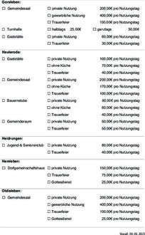 Auf Antrag kann eine kostenfreie bzw. ermäßigte Nutzung durch die Bürgermeisterin in Absprache mit dem jeweiligen Ortschaftsbürgermeister gewährt werden.