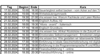 Bitte melden Sie sich rechtzeitig in den Geschäftsstellen oder den Außenstellen der VHS an!