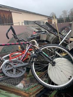 Es wird darum gebeten, bitte nur „Schrott“ in diesen Container zu werfen und keine kompletten Fahrräder, abgelaufene Farbreste und ähnliches.