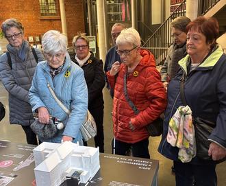 Eigens für uns Sehbehinderte führte Frau Mayer uns durch das Haus. Besonders für blinde Menschen waren die Erklärungen „anschaulich“ und nachvollziehbar. Auch das Tastmodell in der Eingangshalle half dabei. Danke für die lehrreiche Führung.