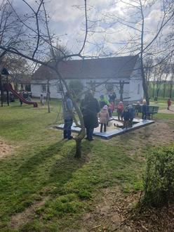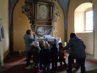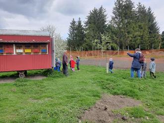 Nach dem Frühstück im Dorfgemeinschaftshaus startete die Erkundung des Ortes. Es warteten drei Entdeckerstationen auf die Kinder. So begrüßte Frau Sigrun Rücknagel die kleinen Gäste in der Kirche St. Johannes. Neugierig lauschten sie den Ausführungen und bestaunten die tolle Kirche. An der zweiten Station, der Feuerwehr, wartete Herr Kevin Stratmann auf die kleinen Entdecker und erklärte/zeigte die Feuerwehrausrüstung, sowie das Feuerwehrfahrzeug. Nach dem Mittagessen ging es zur dritten Station. Herr Volker Bergmann, langjähriger Imker, nahm sich viel Zeit und erklärte den Kindern wie Honig entsteht und zeigte wie fleißig die Bienen in ihrem Bienenwagen arbeiten. Abschließend lud Herr Bernd Stratmann ganz spontan alle Kinder zu sich nach Hause ein und zeigte dort die frisch geschlüpften Hühnerküken.
