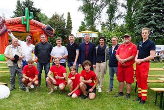 Alle Organisatoren der Zukunft des Naturschwimmbades von links nach rechts: vorn die Rettungsschwimmer: Janek Henne, Manuel Kette, Max Münchhoff, Nicky Seebonn; hintere Reihe: Roland Schröder, Sascha Hartmann, Maik Balthasar, Silvana Schäffer, Sören Schobeß, Christian Karl, Frau Hoffmann- Messerschmidt (ASB), Martin Brückmann (ASB), Fred Kästner, Hans Heckert