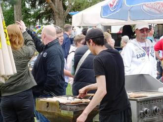 Großes Gedränge am Grillstand, Baden macht halt hungrig
