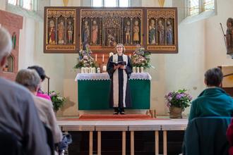 Liturgisch wurde der Festgottesdienst von Pfarrerin Denise Scheel geleitet. Die Kinder haben mit Gemeindepädagogin Elisa Wagner nach den kleinen Schätzen im Leben gesucht.