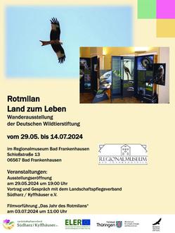 Seit dem 29. Mai 2024 gibt es im Regionalmuseum Bad Frankenhausen eine multimediale Wanderausstellung mit dem Titel „Rotmilan - Land zum Leben“. Die Ausstellung ist eine Kooperation zwischen der Deutschen Wildtierstiftung, dem Landschaftspflegeverband Südharz/Kyffhäuser e.V. und dem Regionalmuseum Bad Frankenhausen.