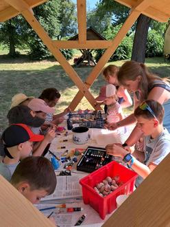 Nach diesem gelungenen Start, ging es an die vorbereiteten Stationen. Es konnten Schneckenhäuser bemalt, und Insektenhotels gebaut werden. Es wurde über Kräuter, deren Merkmale und Verwendung berichtet, eine Station hat sich mit dem Marienkäfer beschäftigt. Es konnten auch welche gebastelt werden, und natürlich gab es viele Informationen rund um das nützliche Insekt.