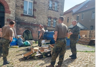 So wurde spontan die Entrümpelung der Rathauskellers durch unsere Pateneinheit in Angriff genommen. Mehrere Container Müll und Sperrmüll wurden ausgeräumt, entsorgt und das historische Archiv durch Umlagerung vor dem Verfall bewahrt.