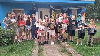 18 Kinder und ihre Betreuerinnen Doris Gorgosch und Helena Melicz bedanken sich für die finanzielle Unterstützung und Sachspenden, die der Bund der Heimatvertriebenen Bund der Heimatvertriebenen e.V. - Regionalverband Kyffhäuser und Sömmerda sowie Sponsoren bereit gestellt haben.