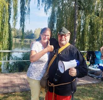 „Die Zeit ist nun heran, da zum 2. Male der hochherrschaftliche Warenmarkt zu Heldrungen seine Pforten öffnet!“ Als ich diesen Satz am letzten Samstag um 9.00 Uhr, zusammen mit dem Vereinsvorsitzenden des Fördervereins Naturschwimmbad Heldrungen Maik Balthasar und dem Ortschaftsbürgermeister aus Heldrungen Matthias Teubner vom höchsten 5- Meter- Turm der Welt (durch den geringen Wasserstand des Badesees ist die Entfernung bis zur Wasseroberfläche 5,70 m) über den Festplatz erschallen ließ war für viele Vereinsmitglieder schon die meiste Arbeit getan.
