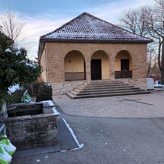 der nach einer frühen Erwähnung von 1611 in einem Sterberegister angelegt wurde und ab 1732 mit dem Neubau der Kirche einzige Begräbnisstätte ist. Eine Erweiterung gab es 1863 mit der Einfriedung und dem Bau der Kapelle 1938/39. Erhalten sind die Felder-Einteilungen mit dem Schmiedeeisernen Tor, der Treppenanlage und der Eschenallee. - neuer Friedhof