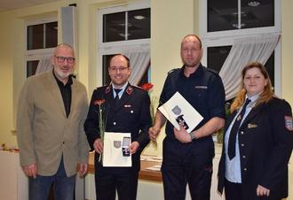 1. Beigeordneter Uwe Kirchner; die Kameraden Felix Graumüller und Denny Kirchner; stellv. Ortsbrandmeisterin Andrea Naumann (v. l. n. r.)