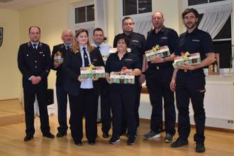 Anschließend bedankte sich der Ortsbrandmeister bei den Mitgliedern des Feuerwehrvereins für die Betreuung der Bar und des Buffets. Durch die finanzielle Unterstützung der Gemeinde und des Feuerwehrvereins sowie persönliche Beiträge der Kameraden welche Salate, Gemüse-, Käse- und Wurstplatten sowie Nachtisch und andere Leckereien für ein kleines Buffet zauberten, fand der Abend einen würdigen Ausklang.